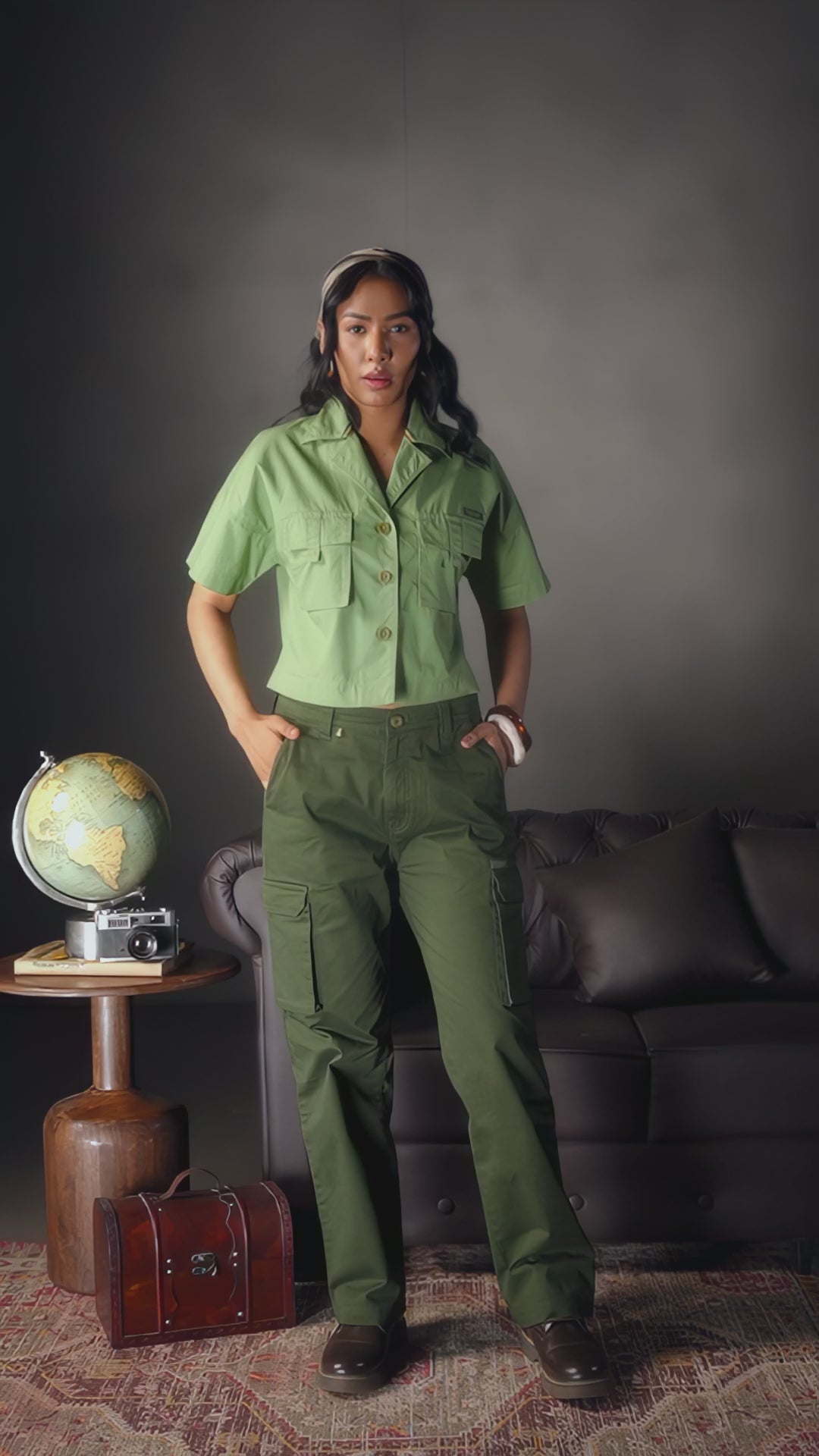 Panthera Crop - Women's Safari Shirt in Sal Green
